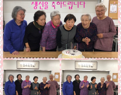 75세 이상의 교우들이 함께 모여 건강체조, 노래, 춤, 공작, 공예와 성경공부 등을 하며 식사와 생일파티도 나누게 됩니다.